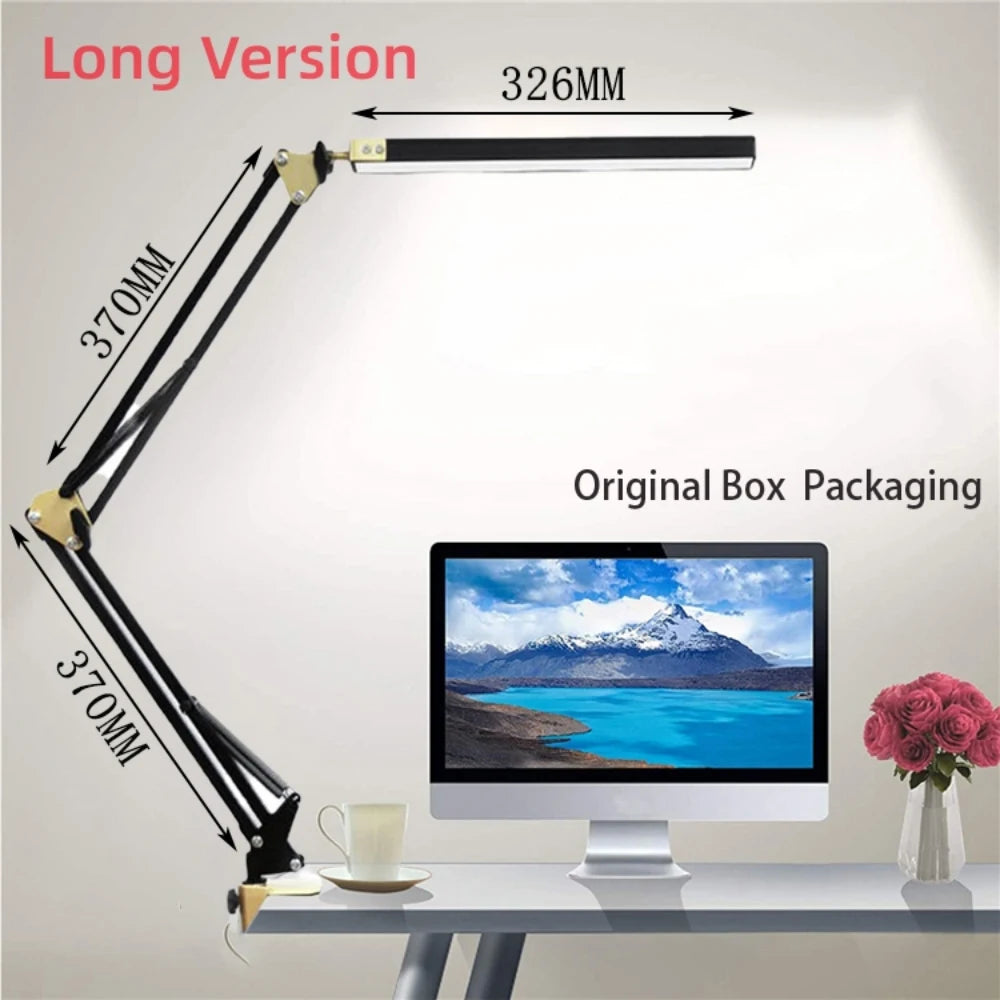 LED Desk Lamp with Clamp 10W Swing Arm Desk Lamp Eye-Caring Dimmable Desk Light with 10 Brightness Level, 3 Lighting Modes